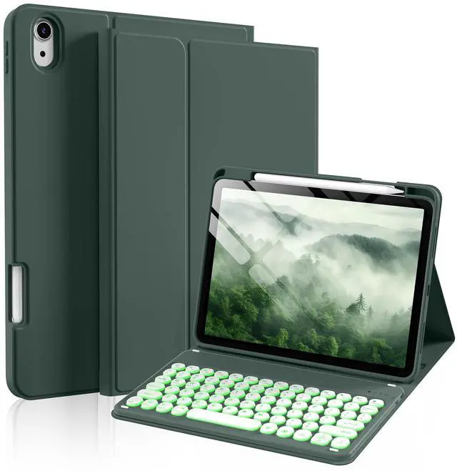 SZPSGC Keyboard Case for iPad A16 11th Generation 11 Inch 2025, iPad 10th Generation 10.9 Inch 2022, 7 Colors Backlit Wireless Detachable Folio Keyboard Cover with Pencil Holder, Green