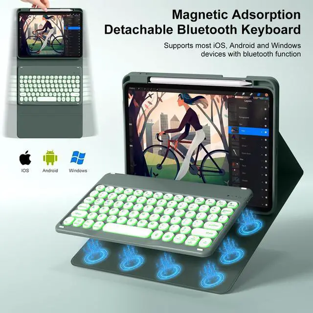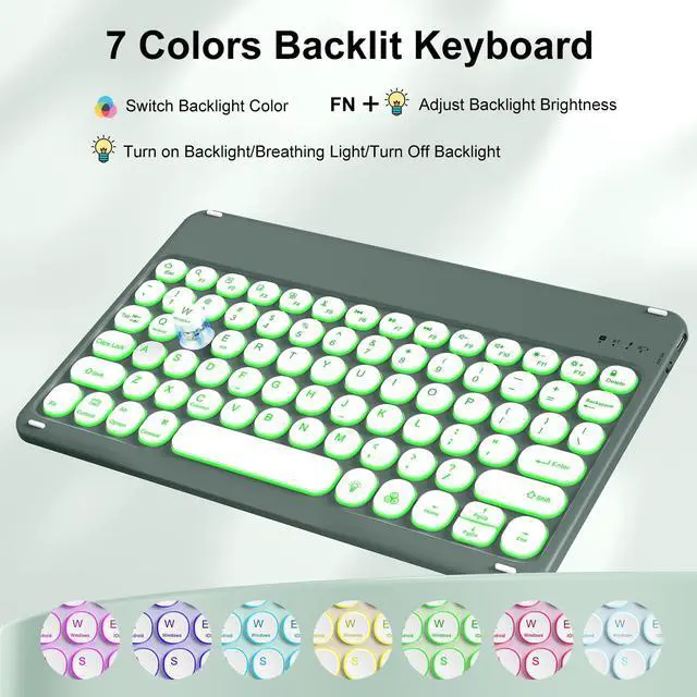 • Backlit Keyboard for iPad 11th/10th GenThe iPad 11th/10th generation case with keyboard allow you easily switch between adjustble 7 RGB pure backlit with 3 levels brightness with a shortcuts is customized for your tablet, engaging yourself in a free and relaxed typing experience in any dim condi