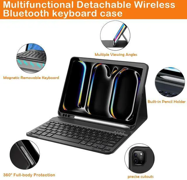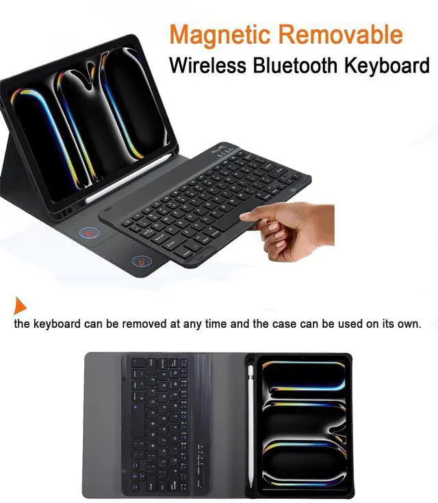 Magnetic Removable Keyboard: This iPad Pro 13 inch case and keyboard are magnetically attached so the keyboard can be removed and the case can be used on its own. The keyboard Turns your iPad into laptop in seconds. Ideal for business, traveling and studying