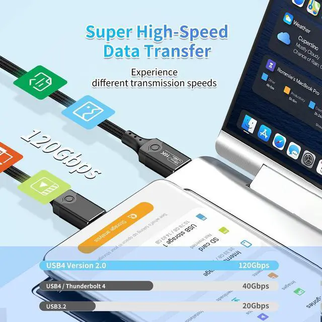 Data Transfer]: Silkland USB 4 Version 2.0 cable delivers a lighting-fast 80Gbps bidirectional data transfer speed, back up 6GB files in 1s. Reduce your waiting time and increase efficiency. This USB C data cable is fully compatible with Thunderbolt 5, ensuring top-tier connectivity. USB-IF Certified provides more stable performance and reliable quality (available on USB-IF official).
