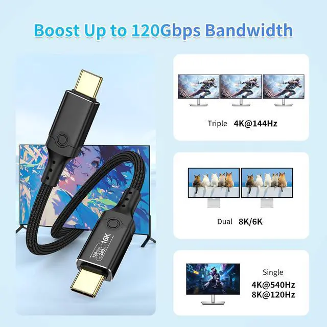 [120Gbps Display Bandwidth]: Boast 120Gbps unidirectional bandwidth, up to 3X faster than Thunderbolt 4 and previous USB4 (40Gbps bandwidth). Up to 16K maximum resolution and support multi-screen setup. Connect dual 8K/6K or triple 4K@144Hz displays to create a powerful workstation. Also support 4K@540Hz. Enhances productivity and meets the demanding needs of professionals in graphics, design, and video editing.