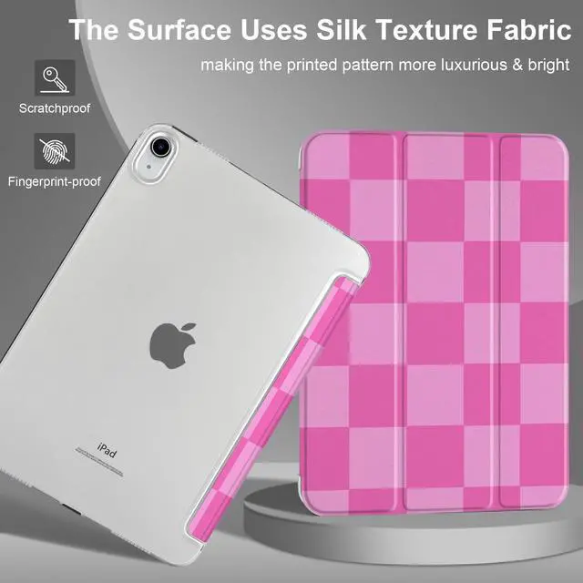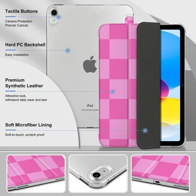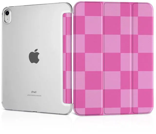 MEEgoodo for iPad A16 11th Generation Case 2025 11 inch, Tablet Cases for iPad 10th Generation 2022, Tablet Cover with Silk Texture & PC Clear Back Cover, Pink Checkered