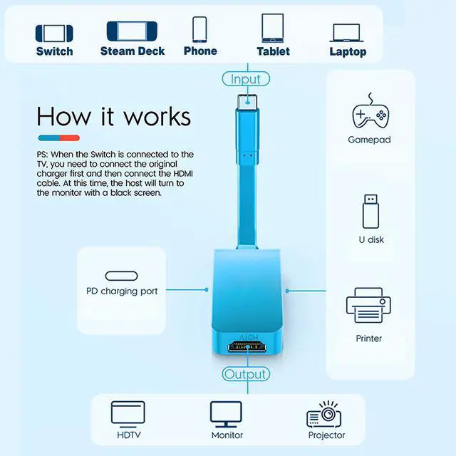 Replacement For Switch Dock: EhYoo portable dock is a optimized USB-C Hub for Switch TV mode. This small device can replace the official bulky Switch dock, while delivering the same quality and functions.