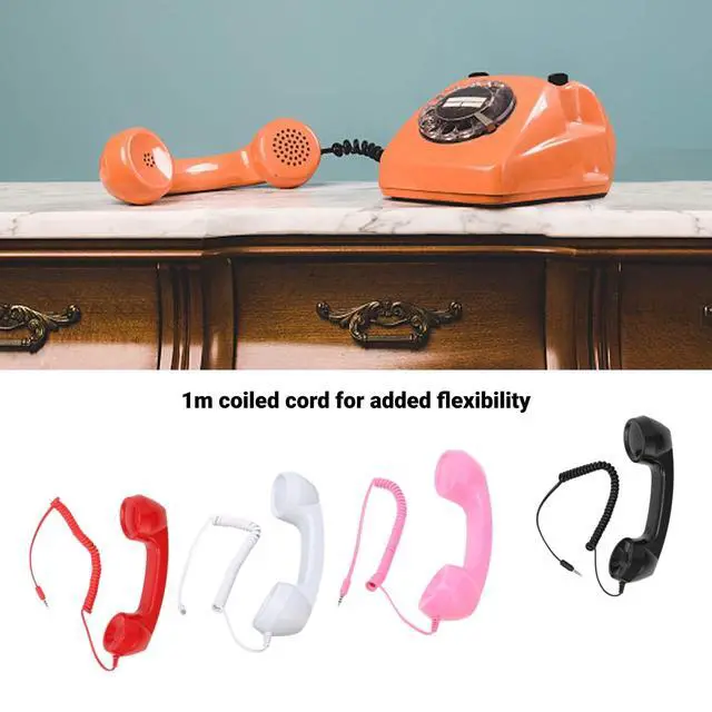 [One Touch Answer ] Retro phone handset, easily answer or ring off the phone with a simple press ^^ [Reduces Cell Phone Radiation] Cell phones handsets, enjoy excellent sound quality while decreasing radiation exposure ^^ [Retro Style Design] Handheld receiver for cell phone, experience superior sound quality and compatibility with different smartphone brands ^^ [Great Choice] Old school phone handset for cellphone, for parents, grandparents, or loved ones, improving phone compatibility and safety ^^ [Compatible and Flexible] Mobile phone telephone receiver, 3.5 mm sound plug fits various smartphones, with a 1m coiled cord for added convenience