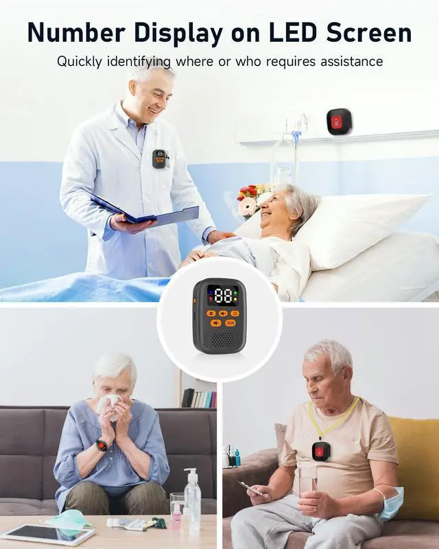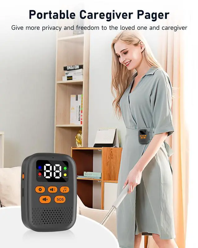 Range Belt-Clip Freedom: Caregiver pager clips securely to belts/pockets or placed on table. Emergency button wears as necklace, wristband, or wall-mountall kits included for instant safety ^^ 16+3