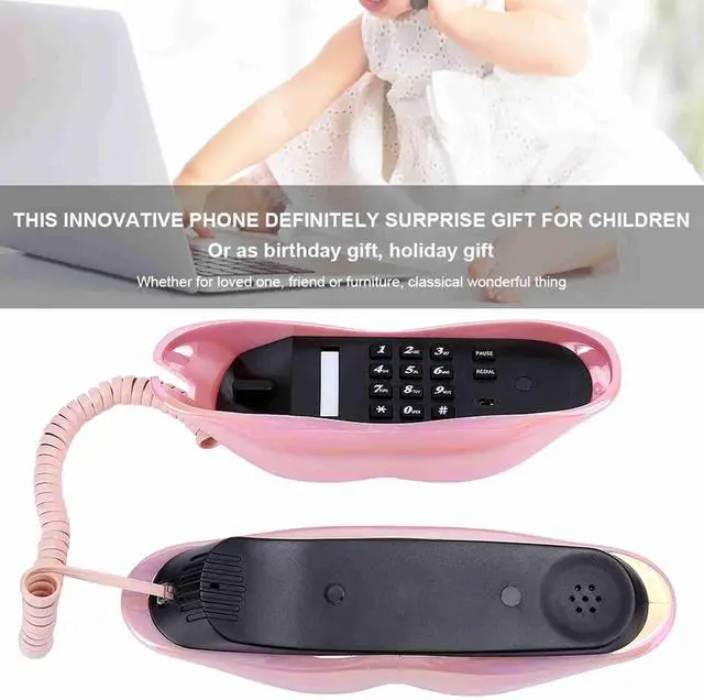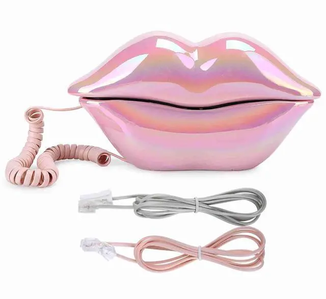 WiringWeight: Approx. 493gProduct feature1. Machine unique, bright color, fashionable and novel modeling, charm incomparable2. Sound quality clear3. Both telephone and absolutely fashionable household item4. Make household more lovely, no matter be put there, it is artwork, let female office have feminine flavour more5. As birthday gifts, holiday gifts, whether for lovers, friends or decorations are all classical and wonderful thingsProduct explanationUnplug the telephone connection and insert the white plug into the wall telephone socket. Insert the other end of this wire into the central socket of the telephone base. Connect one end of the coil curve to the socket of the handset and the other end of the coil curve to the remaining socket on the telephone base to make a call: Pick up the phone, listen to the dial tonality, and dial the number you want to dialWhen the phone rings, pick up the receiver and hangup to end the conversation. Hold the call for about three secondsRe-dial function: Pick up your phone, listen to the dial tonality and press the "dial" buttons. The last number you dialed will be redialed automaticallyPulse/Tonality: If your home equipped with a buttons dialService TO set the dial-mode selector to " POSITION ". For fast and accurate dialing. Please reserve this information for future usePackage List1 x Lip Telephone1 x Telephone Handle1 x Handle Cable1 x Telephone Cable1 x British Telephone Cable (Random Color) 1 x English Manual