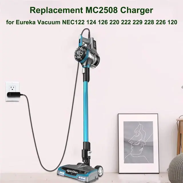[Compatible Models] This replacement MC2508A Charger compatible with EUREKA NEC222 HyperClean Cordless Vacuum Cleaner, Eureka Cordless Vacuum Cleaner NEC280 NEC285 NEC222 NEC122 NEC124 NEC126 NEC220 NEC229 NEC228 NEC226 NEC120 NEC101. ^^ [Product Details] Fits Eureka NEC222 charger features universal AC input ranging from 110V to 240V, making it suitable for use worldwide. It delivers a stable output voltage of 25V-29V, ensuring efficient charging. Additionally, the NEC222 charging cable extends up to 5.9 feet, providing ample reach for convenient use. ^^ [Safety Reliability] The MC2508A charger replacement is engineered with safety features to ensure reliable performance, stable power supply to your eureka Vacuum.