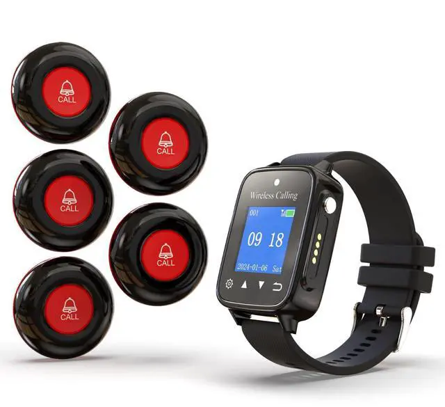 CONVENIENT AND PORTABLE: Wireless watch pager / call button can be worn on the hand or hung around the neck, fixed at the bedside/restroom. The caregiver call button is perfect for taking care of aging parents, especially those with Alzheimer's/dementia/hospice patients/mobility issues. Also ideal for salons, massage rooms, therapy clinics, and spa treatment bedssimply secure the button under or beside the treatment table so clients can call silently at any time. ^^ 300-METER/1000-FOOT