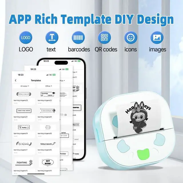 The Pixpulsu D21 Bluetooth label maker supports continuous and fixed-length label tapes. This compact machine is half the weight of traditional label makers, equipped with German thermal print head technology, hassle-free operation, smooth and High-Quality printing ^^ Multiple Creative Functions & Label TemplatesThis label maker machine app provides over 2000+ symbols, 100+ framesand a variety of fonts. Enjoy convenience and save time. Easily create various label designs using the app, including icons, text, tables, symbols, logos, barcodes, QR codes, images, timestamps, Excel imports, scanning, OCR, and voice recognition.