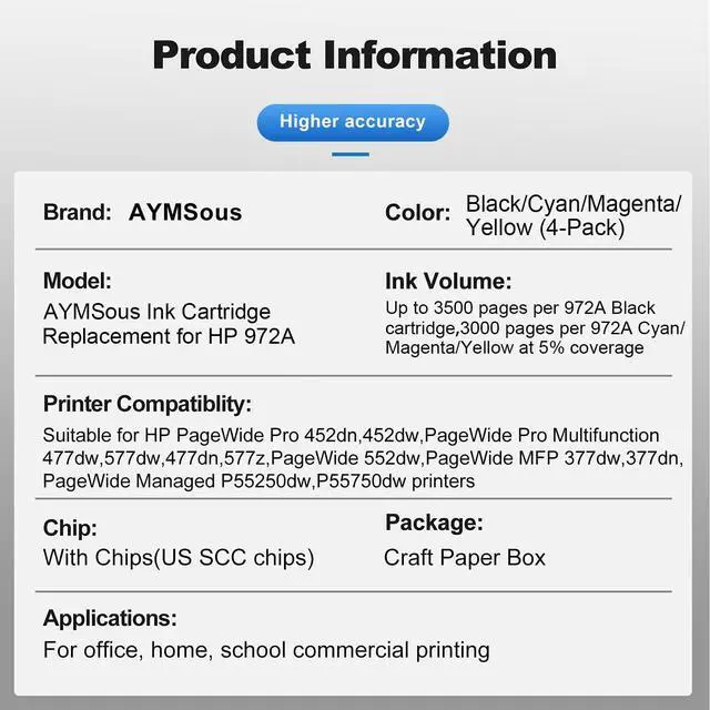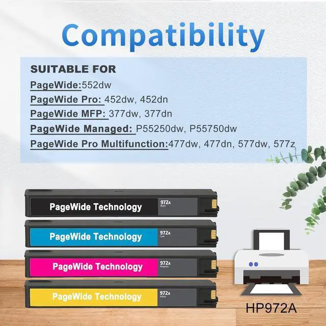 Compatible Printers: Perfectly Suitable for HP PageWide Pro 452dn, 452dw, PageWide Pro Multifunction 477dw, 577dw, 477dn, 577z, PageWide 552dw, PageWide MFP 377dw, 377dn, PageWide Managed P55250dw, P55750dw printers ^^