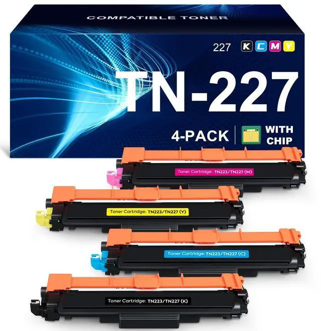 Package Includes: 4 Color TN227 Remanufactured Toner Cartridge Replacement for Brother Toner Cartridge.