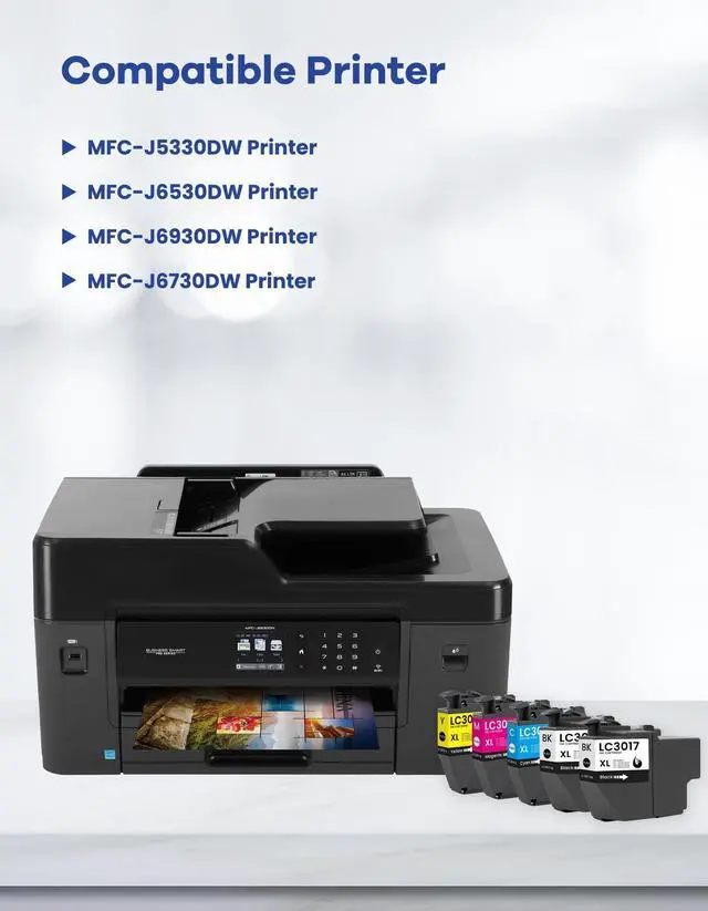 The Package Contains: LC3017 BK/C/M/Y LC3017XL Ink Cartridges 5-Pack (2x Black, 1x Cyan, 1x Magenta, 1x Yellow) ^^ Compatible with Brother MFC-J5330DW, MFC-J6530DW, MFC-J6930DW, MFC-J6730DW Printer ^^