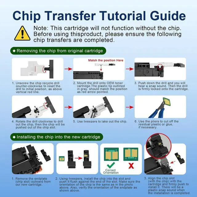 NO Chip: 218A toner cartridges 4 pack do not contain chips, need to remove the chip from the old toner cartridges and install it on the new 218A toner. Please refer to the user guide we provided for the specific methods of removing and installing ^^