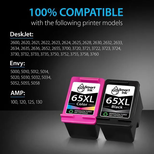 Excellent Print Quality: Smart Ink 65XL ink cartridges are remanufactured from OEM products, professionally cleaned, refilled, and tested to provide you with the same print quality as the original ink cartridges