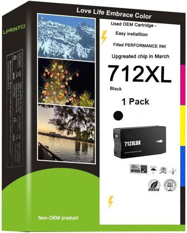 1 Pcs of black 712XL ink cartridge made from recycled materials work with updated prineerfirmware printer ^^