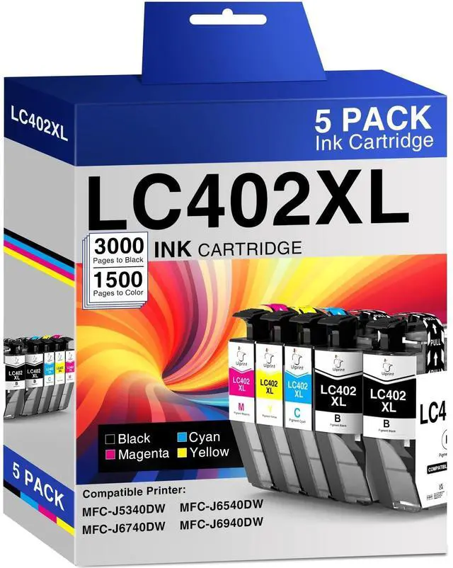 Package Included: Uiprint 5-Pack High-Yield LC402XL Ink Cartridges (2 Black, 1 Cyan, 1 Magenta, 1 Yellow) for Exceptional Inkjet Print Quality ^^
