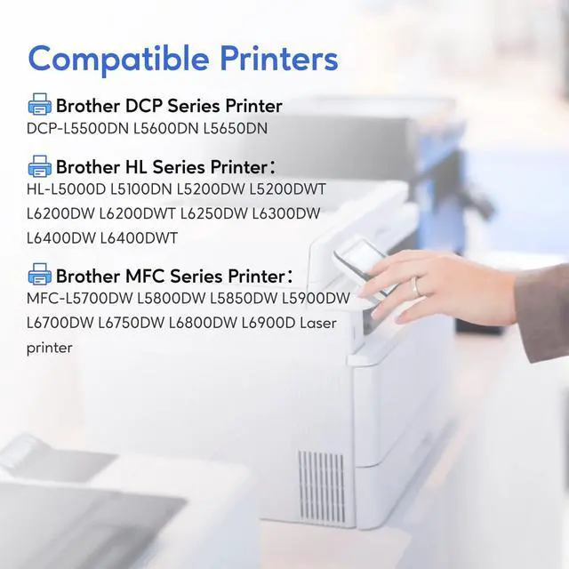 Compatible Printers: HL-L6200DW HL-L5200DW HL-L6200DWT HL-L5000D HL-L5100DN HL-L5200DWT HL-L6250DW HL-L6300DW HL-L6400DW HL-L6400DWT MFC-L5700DW MFC-L5800DW MFC-L5850DW MFC-L5900DW MFC-L6700DW MFC-L6750DW MFC-L6800DW MFC-L6900DW DCP-L5500DN DCP-L5600DN DCP-L5650DN printer.