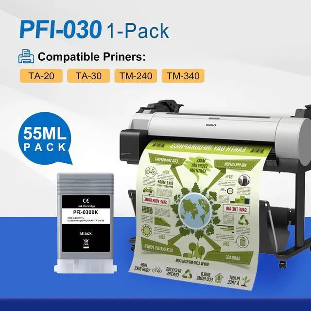 Pigment Ink CartridgeCompatible Printers: Replacement for Canon imagePROGRAF TA-20 TA-30 TM-240 TM-340 PrintersInstallation Instructions: For the better printing performance, please clean the print head for 1 time after installing the new ink cartridges. If the ink cartridges would not be recognized by your printer at the first time, please try to turn off the printer 30 second and then turn it on and re-install the cartridges again. Please do not get out the old cartridge before replacing the new one to prevent the print head from drying and clogging.