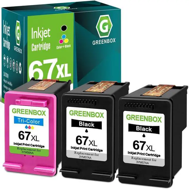 Package Contents: 3-Pack High Yield for HP 67xl ink cartridges black/color combo pack replacement for HP Ink 67 (2 Black 1 Tri-Color) ^^ For HP 67xl 67 Ink Cartridges work with DeskJet/DeskJet Plus 1210, 1212, 1215, 1255, 2300, 2330, 2331, 2332, 2333, 2700, 2700e, 2710, 2710e, 2720, 2720e, 2721, 2721e, 2722, 2722e, 2723, 2723e, 2724, 2725, 2729, 2732, 2734e, 2742e, 2752, 2752e, 2755, 2755e, 2800e, 2800, 2820, 2821, 2821e, 2822, 2823, 2828, 2829, 2842e, 2852e, 2855e, 4100, 4100e, 4110, 4110e, 4120, 4120e, 4121, 4121e, 4122, 4122e 4123e, 4130, 4130e, 4132, 4132e, 4133e, 4140, 4152, 4152e, 4155 4155e, 4158, 4158e, 4175e, 4200, 4200e, 4220, 4220e, 4252e, 4255e, 4258e Printer ^^ For HP 67xl 67 Ink Cartridges work with Envy/Envy Pro 6000, 6000e, 6010, 6010e, 6020, 6020e, 6022, 6022e, 6030, 6030e, 6032, 6032e, 6034, 6034e, 6050e, 6052, 6052e, 6055, 6055e, 6058, 6065e, 6066e, 6075, 6075e, 6400, 6420, 6420e, 6422, 6422e, 6430, 6430e, 6432, 6432e, 6450e, 6452, 6452e, 6455, 6455e, 6458, 6458e, 6464, 6475, 6475e Printer ^^