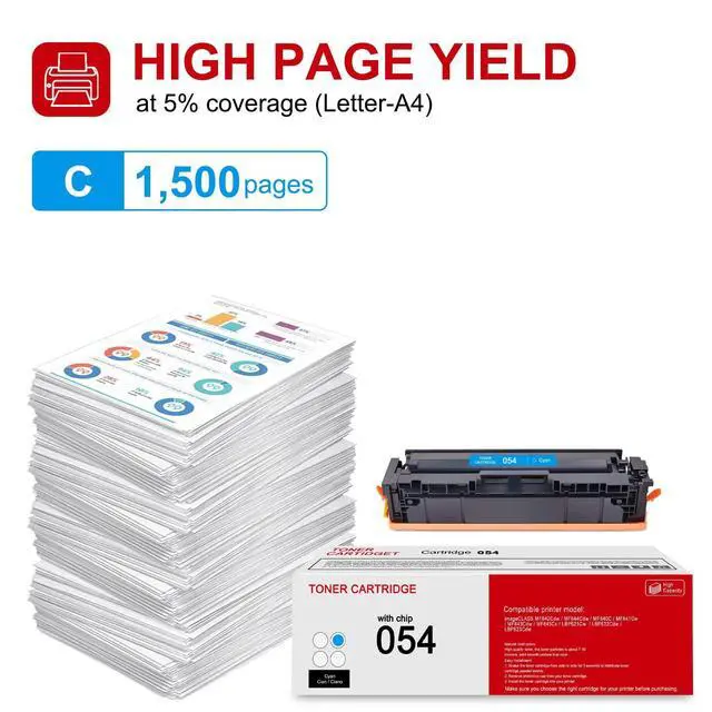 ^^ Page Yield: 1, 500 pages per CRG-054 C cyan toner cartridge at 5% coverage.