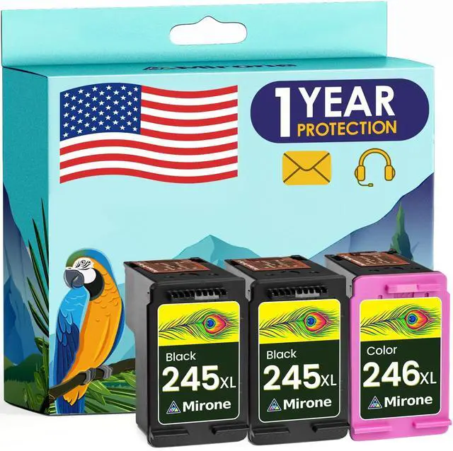 Great quality and service. Our cartridges go through strict quality testing for print reliability, quality, and yield. You also get access to lifetime phone and email support (available on packaging), as well as a 1-year warranty. ^^ Contents. 3 compatible for Canon Ink Cartridges 245 and 246 xl (2 black, 1 color). ^^ Compatible with