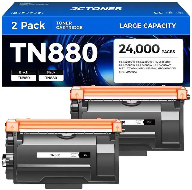 Item Name: JCTONER Compatible Replacement for TN880 TN-880 black toner cartridge 2 set (with chip).