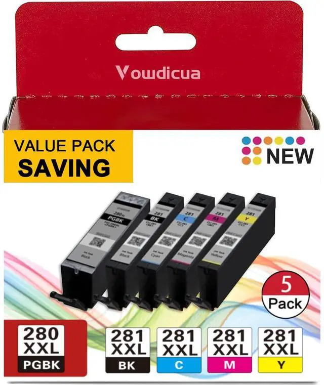 Package Contents: 1 x PGBK 280XXL, 1 x Black 281XXL, 1 x Cyan 281XXL, 1 x Magenta 281XXL, 1 x Yellow 281XXL (Total 5 Pack). Each 280 281 ink cartridges is carefully packaged to ensure safe delivery and optimal performance ^^
