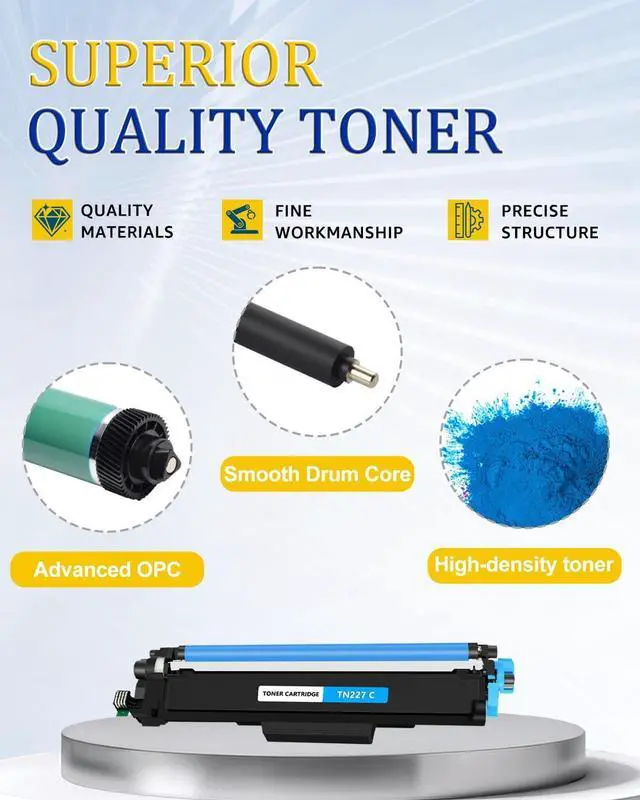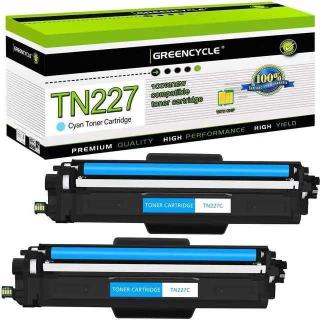 ^^ Package Contents: 2 Pack TN227 Cyan Toner Cartridge (With Chip) ^^ GREENCYCLE compatible toner cartridges provide same performance and printing as genuine cartridge. Bring your ideas to life with vibrant colors, smooth printing and reliable quality.