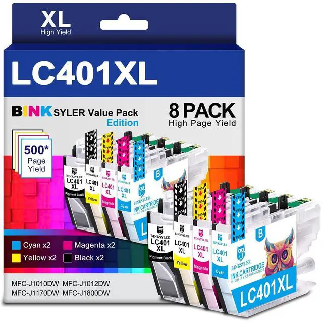 Package Contents: 2x lc401xl black, 2x lc401xl cyan, 2x lc401xl magenta and 2x lc401xl yellow for brother lc401 ink cartridges mfc-j1010dw ink (8 combo pack of lc401xl ink) ^^