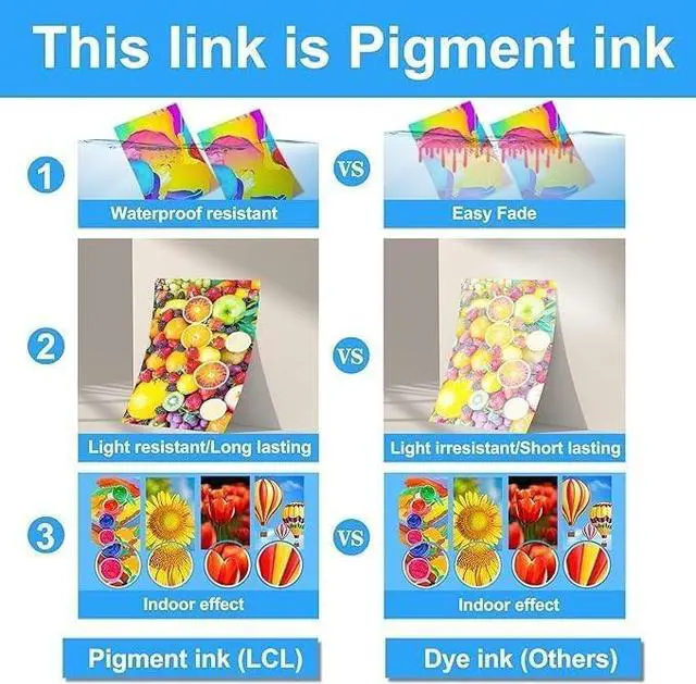 Pigment Ink: LCL LC406 ink is pigment ink which has a high concentration and contrast, and is an ink that can draw fine characters clearly without color infiltration. Pigment inks are waterproof and light resistant and do not fade even when outdoors, thus allowing prints to last long enough.