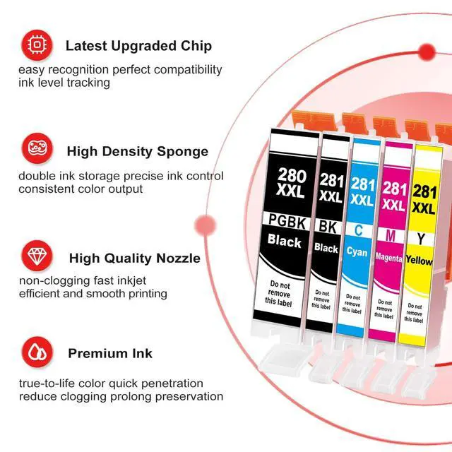 ^^ Upgraded Chips: 280xxl 281xxl ink cartridges equipped with the latest upgraded chips to ensure the compatibility.