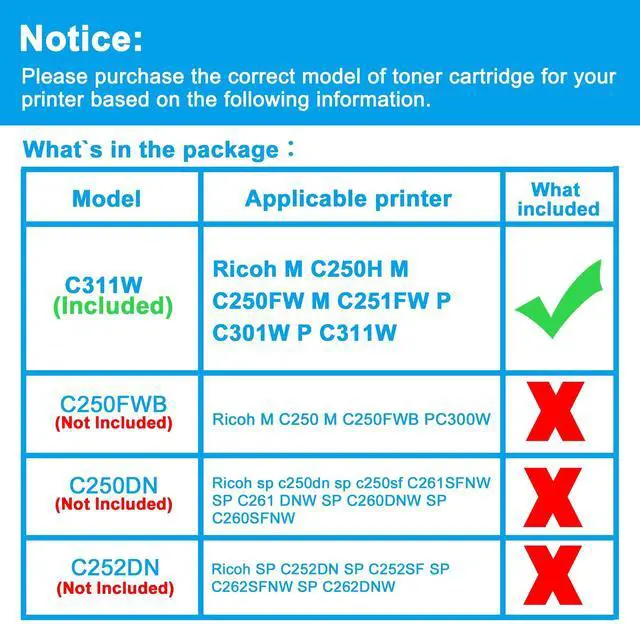 Compatible Printers: Replacement for Ricoh M C250H M C250FW M C251FW P C301W P C311W ^^