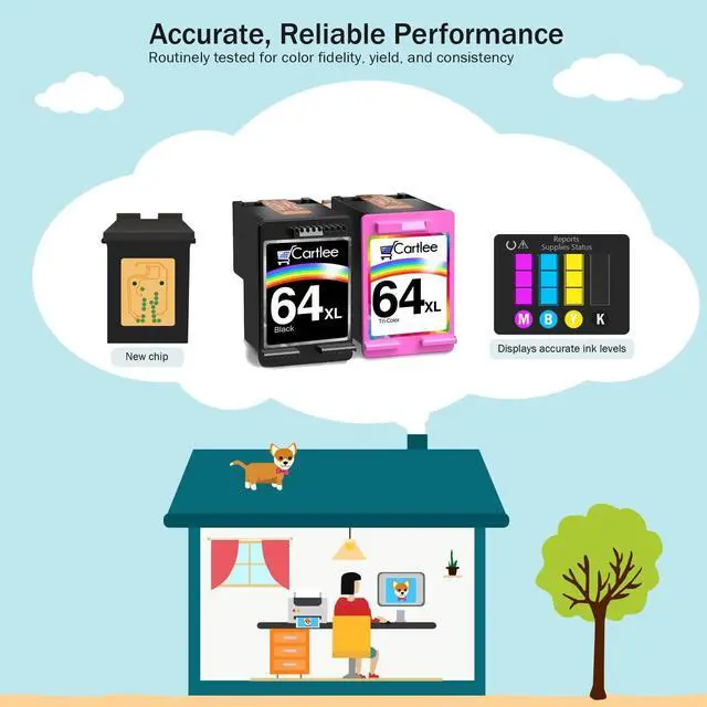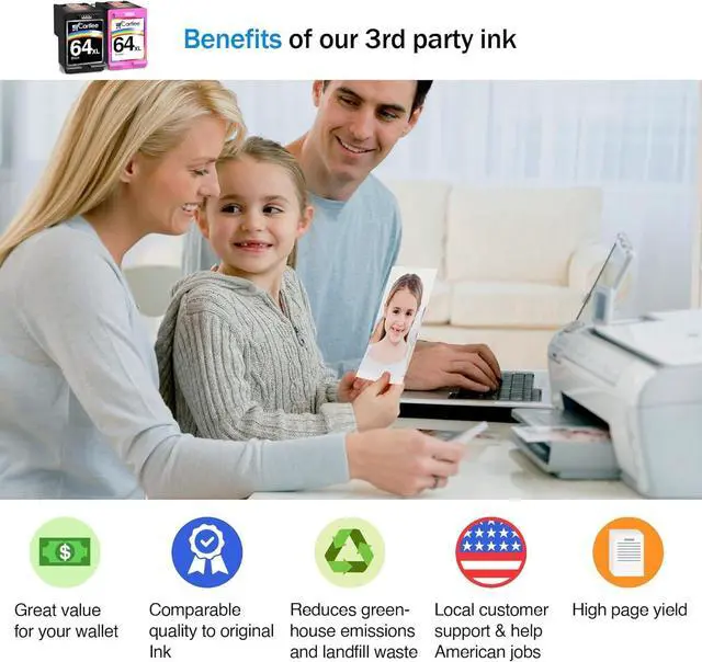 - Contents: remanufactured cartridges for 64xl (1 black, 1 color).