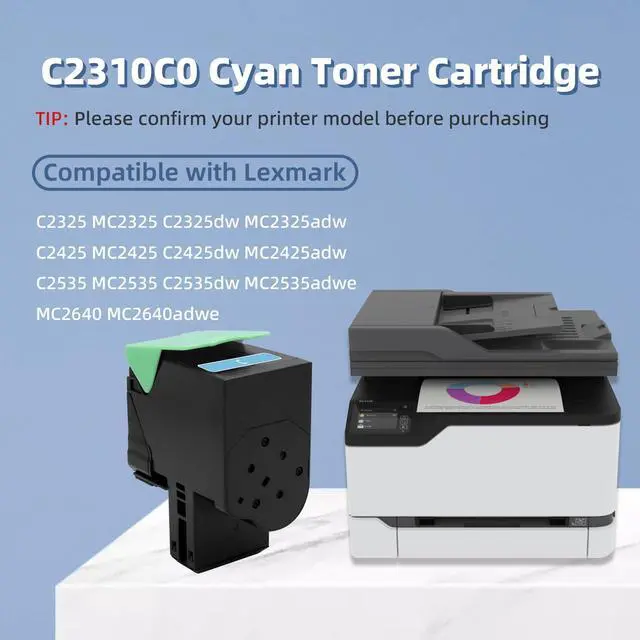 COMPATIBLE MODEL: C2310C0 Cyan toner cartridge compatible with lexmark C2325, C2325dw, C2425, C2425dw, C2535, C2535dw, MC2325, MC2325adw, MC2425, MC2425adw, MC2535, MC2535adwe, MC2640, MC2640adwe printer.