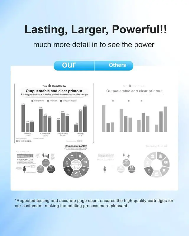 High Quality: Tested through rigorous professional assessments, our toner delivers exceptional print quality with sharp text and no toner leakage, ensuring every document is perfectly presented ^^ Our products are designed specifically for home office or high-volume commercial printing needs, delivering exceptional cost efficiency by reducing replacement frequency, saving time, and lowering consumables costs