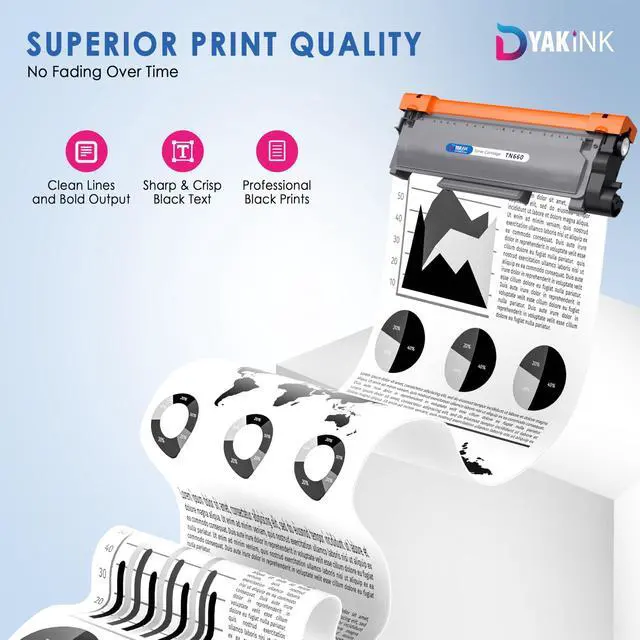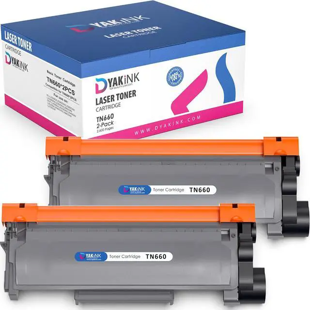 DYAK INK TN660 High-Yield Black Toner Cartridge 2 PackBoost your printing efficiency with the DYAK INK TN660 toner cartridge 2-pack. Each cartridge delivers up to 2, 600 pages, giving you a total of ~5, 200 pages per pack. Perfect for homes, offices, and schools needing reliable and cost-effective printing. These toner cartridges are designed for easy installation and full compatibility with a wide range of Brother printers. Built for dependable performance, they deliver sharp text and professional-quality results with every page.