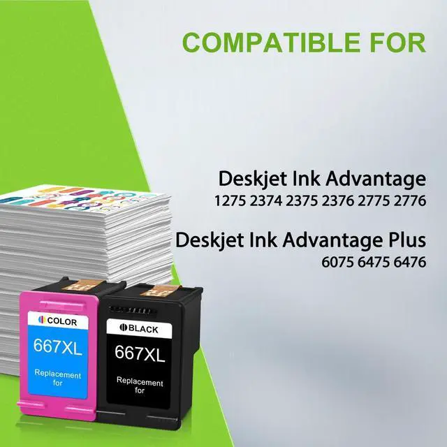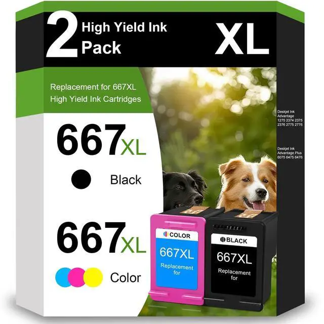 ^^ 667 INK Contents: 2 Pack of Remanufactured 667XL Ink Cartridges Black and Color Combo Pack (1 x Black, 1 x Color) ^^
