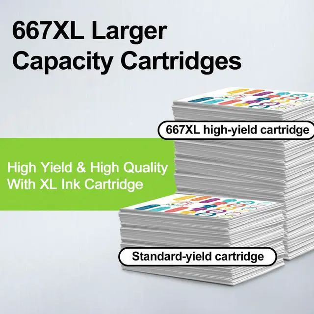 Higher Page Yield: Up to 850 Pages per 667xl black ink cartridge and 650 Pages per 667xl color ink cartridge at 5% coverage (A4/letter).