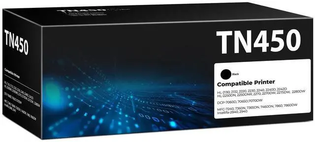 • TN450 Toner Cartridge Replacement for Brother TN450 TN420 TN-450 TN-420 Work with HL-2130, HL-2132, HL-2220, HL-2230, HL-2240, HL-2240D, HL-2242D, HL-2250DN, HL-2270DW, HL-2275DW, HL-2280DW; MFC-7240, MFC-7360N, MFC-7460DN, MFC-7470, MFC-7860DW; DCP-7060D, DCP-7065DN, DCP-7070; Intellifax-2840, IntelliFAX-2940.