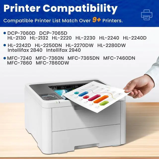 • The TN-450 toner cartridge delivers professional-grade print quality with sharp text, smooth grayscale, smudge-free output, and long-lasting durability - perfect for precision documents in low-to-moderate volume printing.