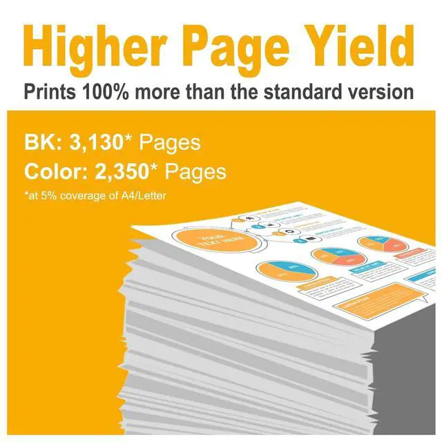 • Page Yield: Approximately 3130 pages per Black Toner Cartridge, 2350 pages per Color Toner Cartridge at 5% coverage of A4/letter.