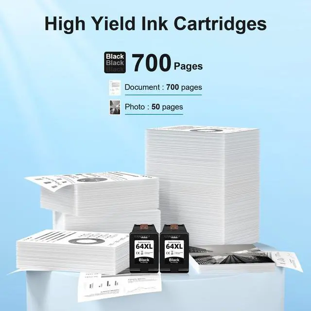 Black Ink Cartridges: 700 pages compatible for hp 64 black ink cartridgeAt 5% Standard Coverage), reducing the hassle of frequent ink cartridge changes and especially suitable for users with high volume printing. ^^ 64 XL for hp 64 ink cartridges