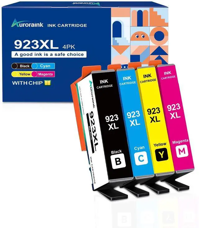 With Chip - Auroraink 923XL ink cartridge contains the latest version of the chip, directly on the machine can be used, do not need to remove the old chip installed on the cartridge, very convenient! ^^ Compatible Printers - 923XL ink cartridges compatible with HP OfficeJet Pro 8130 8135 8138 8139 8120 8122 8124 8125 8132 8134 Series Printer ^^ Important Notice - 923xl black and color combo pack is not compatible with *e series printers that are registered and paying for HP+ (HP Instant Ink) service ^^ Package Contents - 923XL compatible with HP 923e 923XL ink cartridges(1 * 923XL black ink cartridge, 1 * 923XL cyan ink cartridge, 1 * 923XL magenta ink cartridge, 1 * 923XL yellow ink cartridge) ^^ High Page Yield - Each 923XL black ink can print up to 1, 000 pages, and each 923XL color ink can print up to 800 pages (At 5% coverage A4 / letter size) ^^