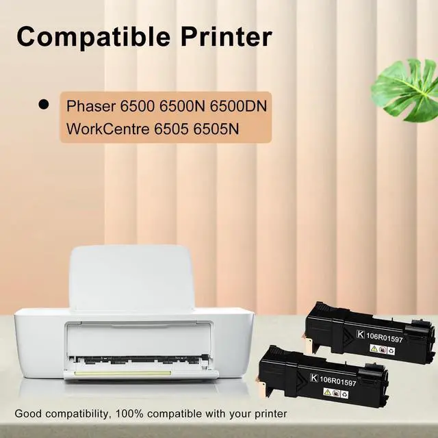 What's in the box: 2-Pack of Phaser 6500 ^^ WorkCentre 6505 (2-Pack, 106R01597) high yield toner cartridges with chips (Not OEM) ^^