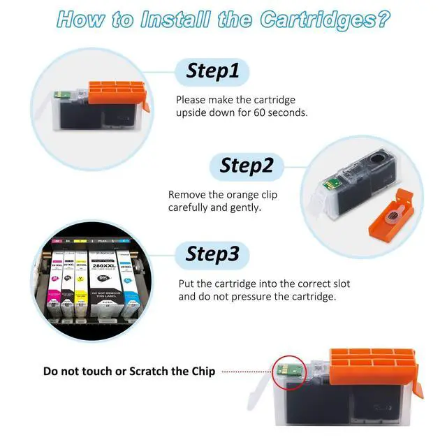 Package Contents: 1 x 280XXL large Black, 1 x 281XXL Small Black, 1 x 281XXL Cyan, 1 x 281XXL Magenta, 1 x 281XXL Yellow, NOT Include Photo Blue, Total 5 Pack ^^