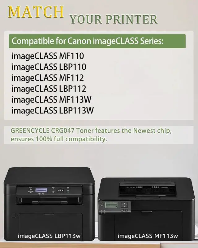 GREENCYCLE 4-Pack Compatible Toner Cartridge Replacement for Canon 047 CRG047 Toner. ^^ Stability and ReliabilityThe chip has powerful computing and processing capabilities to perform efficiently. It is stable, reliable and functionally depleted to ensure normal operation in a variety of environmental conditions.