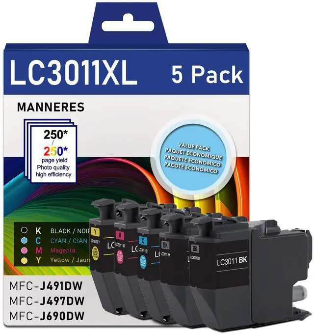Compatible LC3011XL Ink Cartridges Printer: MFC-J491DW MFC-J497DW MFC-J690DW MFC-J895DW Printer ^^ LC3011 ink cartridge has good compatibility, accurate matching with the printer, large capacity, multi-layer packaging, no damage, and no leakage ^^ Tips1. Remove the yellow "PULL" label before installing the cartridge. 2. Ignore the printer ink level "? " reminder, it will not affect the use of the cartridge