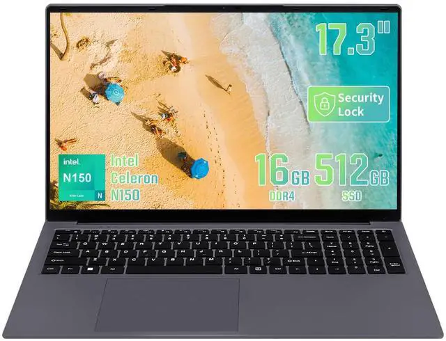 [ Stunning 17.3" Full HD Display]Enjoy a 17.3" IPS Full HD screen (19201080) with ultra-narrow bezels and 94% screen-to-body ratio. Vivid colors and sharp details make multitasking, movies, and gaming more immersive. ^^ [Privacy-Friendly Pop-Up Camera]Innovative sliding 100W webcam for one-touch privacy protection. Dual-band 2.4G /5G Wi-Fi ensures fast, stable connectivity for video calls, streaming, and online work. ^^ [High-Performance Powerhouse]Equipped with 12th Gen Twin Lake-N150 processor ( 2.0GH z base, up to 3.6GH z turbo) and 16GB DDR4 RAM. Smooth multitasking, ultra-responsive performance, and advanced cooling for consistent efficiency.