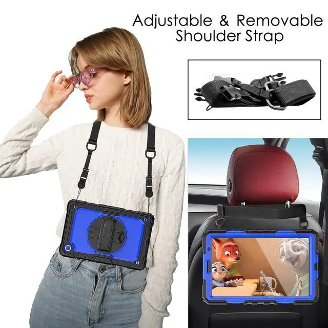 Release(Model Number: SM-T220/T225/T227). Not Compatible with other devices. Please confirm your tablet model number before purchase. ^^ Full-Body Protection & Screen ProtectorSamsung Tab A7 Lite case is made from 3 layer structure, shock absorbing rubber bumpers outer shell, inner high quality PC back cover and hard front frame built in a screen protector. Better protection it prevents for your tablet Galaxy Tab A7 Lite from accidental drops, scratches, bumps and shock. ^^ 360 Rotatable Kickstand & Pencil HolderGalaxy Tab A7 Lite kids case built in 360 degree rotatating kickstand provide you more angles for typing, reading, watching video, gaming, conference, class ect. The pencil holder is convenient for you to carry your pen anywhere and anytime. (Not included the stylus pen). ^^ Adjustable and Removable Shoulder & Hand StrapGalaxy Tab A7 Lite case comes with an adjustable shoulder strap or you can also use it as a neck strap which is perfect for when you don't need to hold the tablet. The handheld Velcro strap one the back is perfect for using the tablet and keeping it steady while moving around. Ideal for traveling, engineer outdoor operation, hiking and other outdoor activities ect.