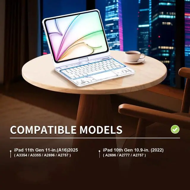 Precision Fit+Model Coverage This keyboard case Perfectly designed for iPad 10th Generation (A2696, A2757, A2777) and iPad 11th Generation (A3354, A3355, A3356). on the back of your device before purchasing to ensure compatibility. If you are unsure about compatibility, feel free to contact uswe're happy to ass ^^ High-Precision TouchpadEquipped with a multi-touch touchpad that responds instantly, it supports precise cursor control and a variety of gesture operations. It delivers a smooth notebook-level experience for text editing, web browsing, or media playback, significantly boosting productivity and creative expression.